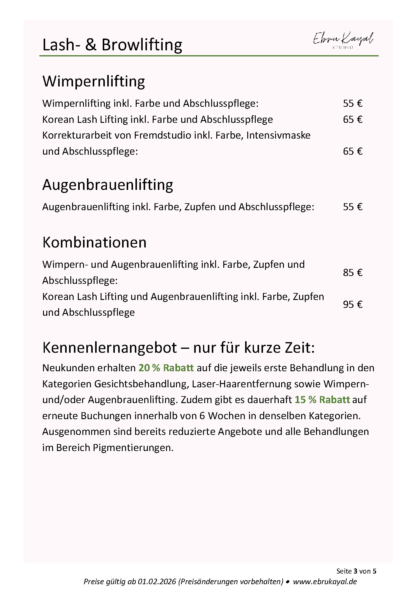 Neukunden erhalten 20 % Rabatt auf die jeweils erste Behandlung in den Kategorien Gesichtsbehandlungen>> sowie Wimpern- und Augenbrauenlifting>>. Zudem gibt es dauerhaft 15 % Rabatt auf erneute Buchungen innerhalb von 6 Wochen in denselben Kategorien. Ausgenommen sind bereits reduzierte Angebote und alle Behandlungen im Bereich Pigmentierungen und Skincare Beratung.